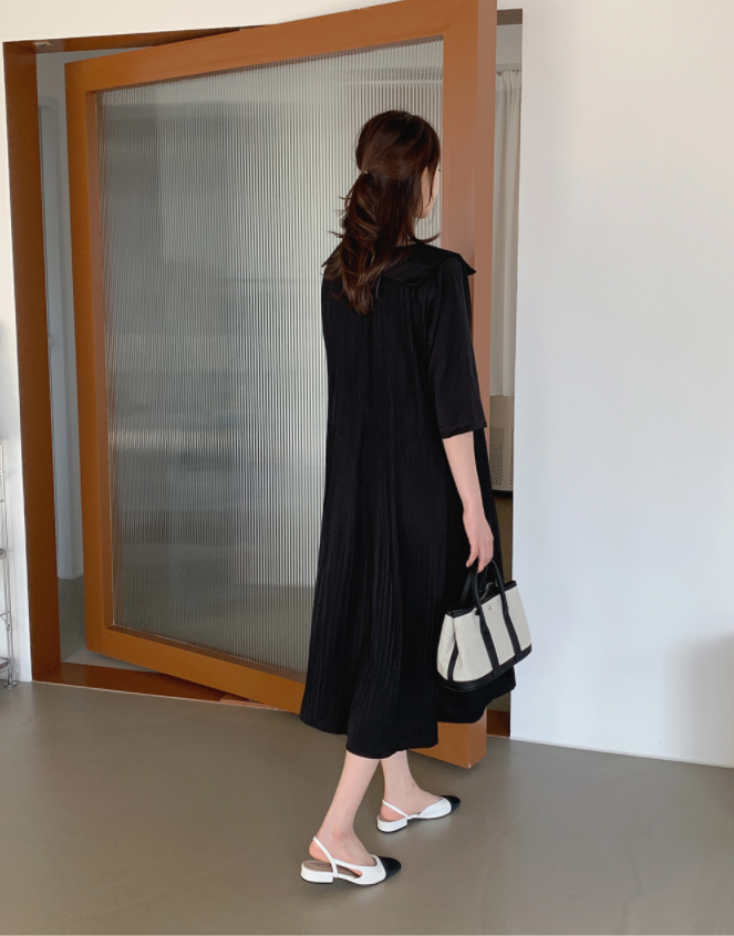 낙낙한 핏감과 카라 디테일로 러블리하면서도 고급스러운 분위기를 연출해줄 원피스 랍니다.