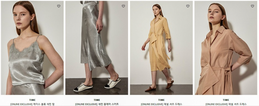 타임 옷의 스타일은 현대적이고 시크하면서